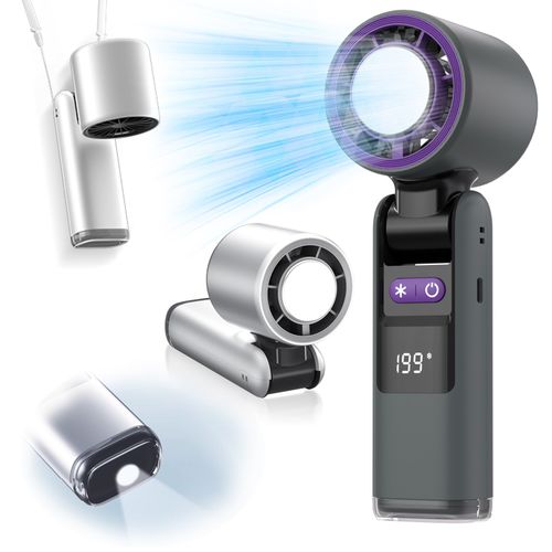 xigmer 미니 선풍기 LED 목걸이선풍기 접이식 손선풍기 휴대용 캠핑용 무선선풍기 5단 풍속, 보라