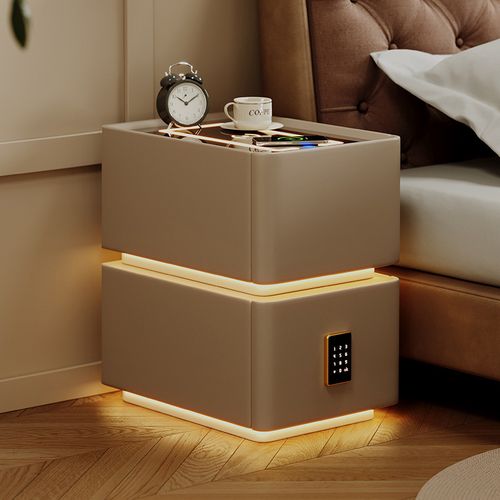 Sunwer 테이블 usb 무선충전 감성조명 블루투스스피커 스마트 침실협탁 사이드테이블, 카키