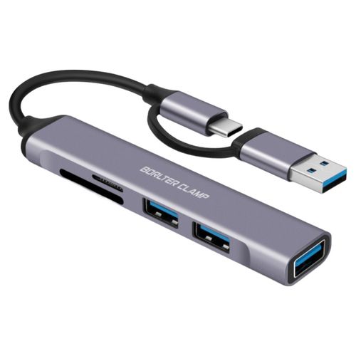 USB C 허브, USB C 어댑터 5-in-1 USB 포트 3개 및 SD microSD 카드 리더 포함, USB 도킹 스테이션 맥북, 삼성 갤럭시, 노트북 및 휴대폰과 호환 가능, 회색, 1개
