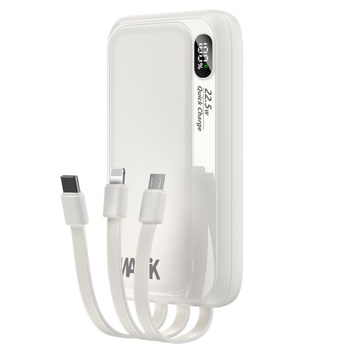 WAPIK PD 22.5W 일체형 대용량 보조배터리 고속충전 M1 10000mAh QC3.0 잔량표시, 화이트
