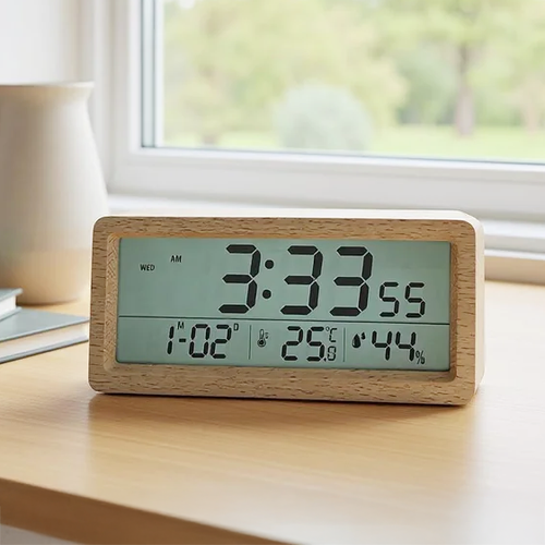 애즈맘 무소음 탁상 알람 lcd 시계 우드 원목 전자 디지털 시계 미니 나무 집들이 생일 선물, 내추럴