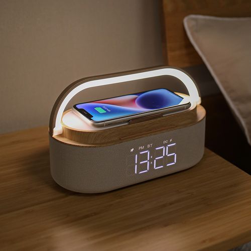 무아스 선라이즈 15W 무선충전 스피커 무드등 탁상시계