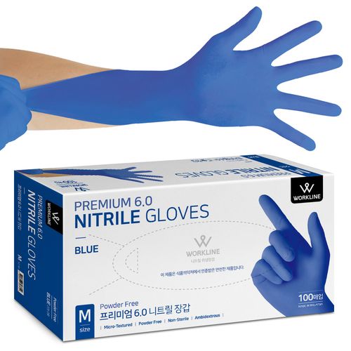 (식품용) 프리미엄6.0 두꺼운 니트릴 일회용 장갑 100매, 블루, 대(L), 1개