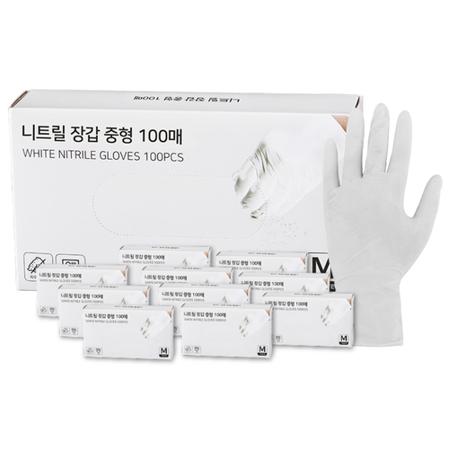 제오닉 니트릴 고무 라텍스 일회용 장갑 중형 100매 10개 특별 구매 찬스, 10개, 중(M), 화이트