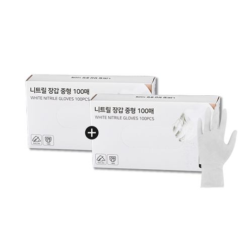 제오닉 니트릴 고무 라텍스 일회용 장갑 중형 화이트 100매 1+1 초특가, 1개, 중(M), 화이트
