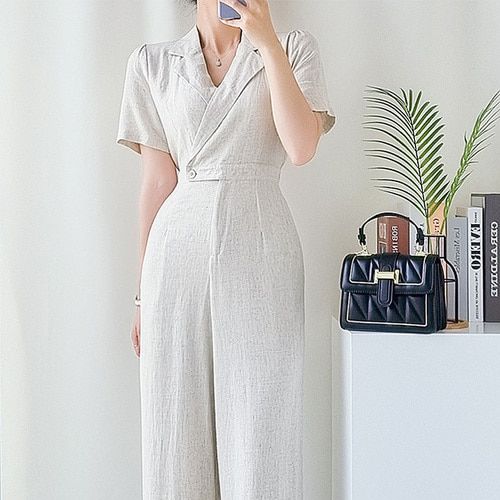 봄 여름 린넨 카라 벨트 와이드 여성 점프수트 여자 점프슈트 시널