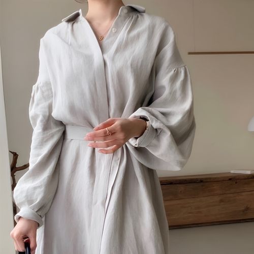 소솜 여성 간절기 린넨 셔츠 원피스 루즈핏 롱 긴팔 벌룬소매 출근룩