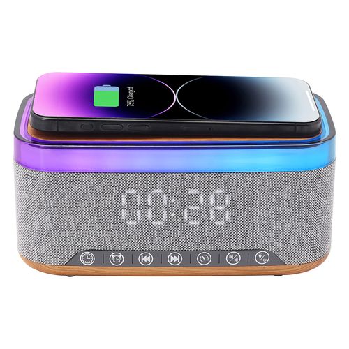 SMABAT 휴대폰 무선 충전 블루투스 스피커 LED 무드등 탁상 시계 디스플레이 시계 알람