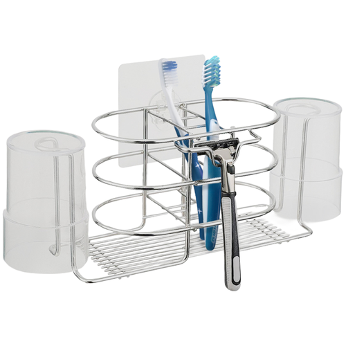 내집클로버 스텐칫솔꽂이 양치컵 면도기 거치대, 2개, 실버