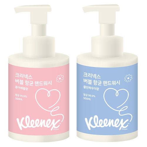 크리넥스 버블 향균 핸드워시 퓨어애플 500ml + 클린파우더 500ml 세트