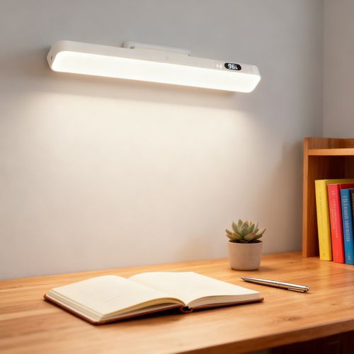 HUIJII 디지털 전력표시 무선 리모컨 탁상 스탠드 조명 간편부착 무타공 마그네틱 LED등 화장대 조명, 화이트