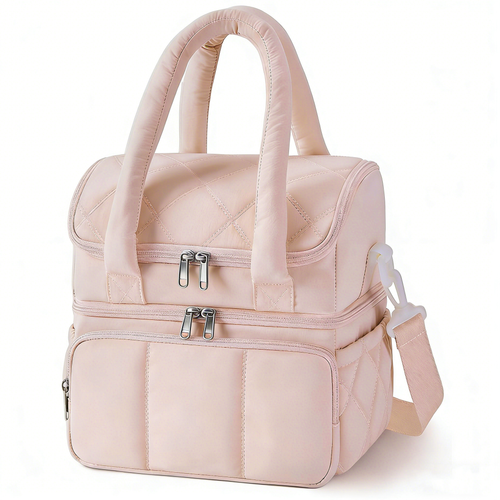 이중 단열 가방 누빔 도시락 가방 피크닉 단열 가방 숨겨진 가방, 핑크, 1개