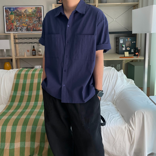 남자 여름 루즈 오버핏 릴렉스드 청 데님 반팔 셔츠 남방