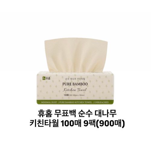 휴홈 무표백 순수 대나무 키친타월 100매 9팩(900매)