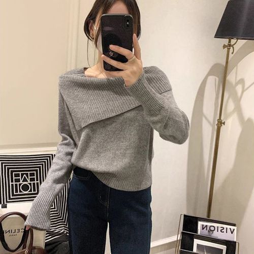 페이준 여성 봄 가을 오프숄더 니트 긴팔 터틀넥 스웨터 LN1772