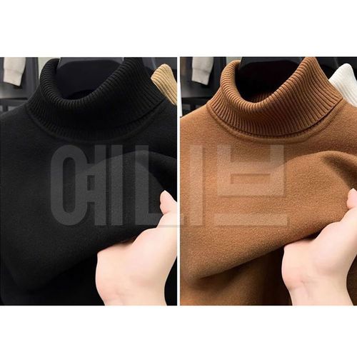 예니브 1+1 남성 가을 겨울 두꺼운 골지니트 기모 목폴라 니트 이너티 순색 터틀넥 기모 스웨터 풀오버 긴팔티