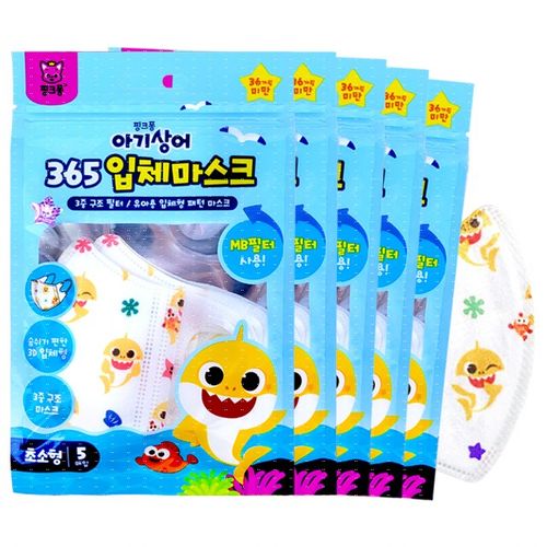 핑크퐁 365 입체마스크/3중구조/MB필터/초소형(5매입), 5매입, 5개, 핑크퐁 아기상어