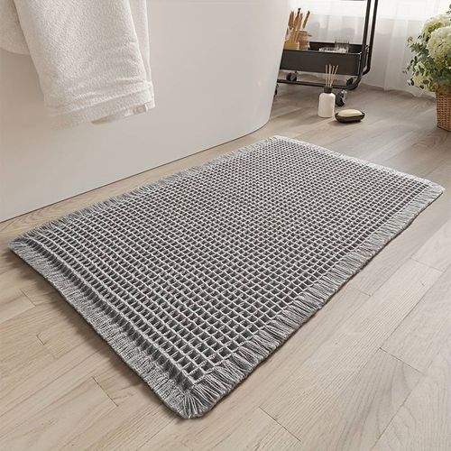 와플 욕실매트-초흡수 미끄럼방지, 세탁기 가능&프린지,고무 백킹,초고급 소프트, 그레이