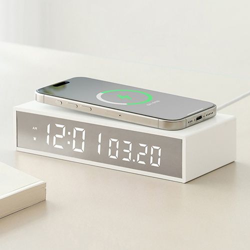 무아스 슬림 엣지 미러 무선충전 알람 디지털 탁상시계 15W