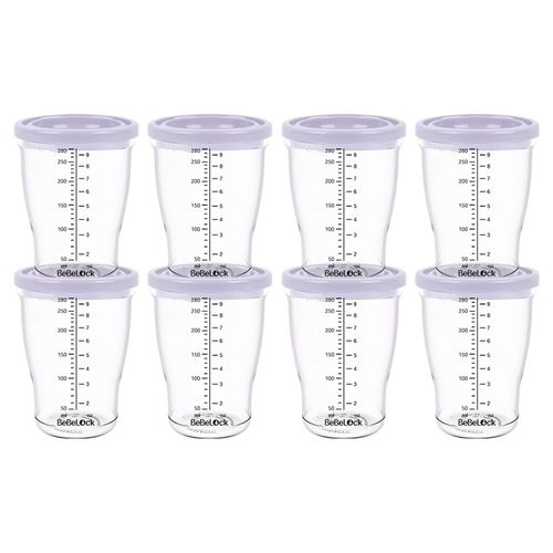 베베락 유아용 PP 밀폐 이유식 용기, 280ml, 라벤더, 8개