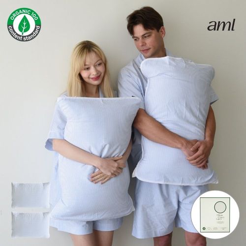 에이엠엘 오가닉 순면 스트라이프 밴딩 베개커버 2장 세트 국산 여행용