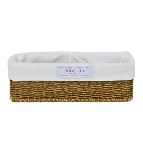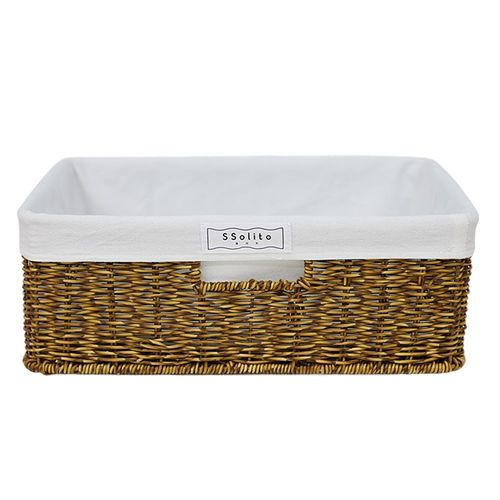 쏠리또 내츄럴 PP 오픈형 라탄바구니+코튼안감세트 사각바구니 수건 수납함 보관함, 짙은색(옵션7+화이트안감), 1세트