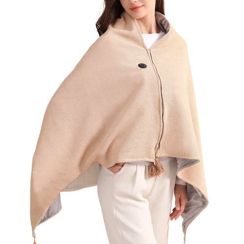 스마일 9구역발열 무선 USB 온열 전기 담요 3단계 온도조절 워셔블 극세사 망토 지퍼 캠핑 차박 다용도+사은품, 베이지