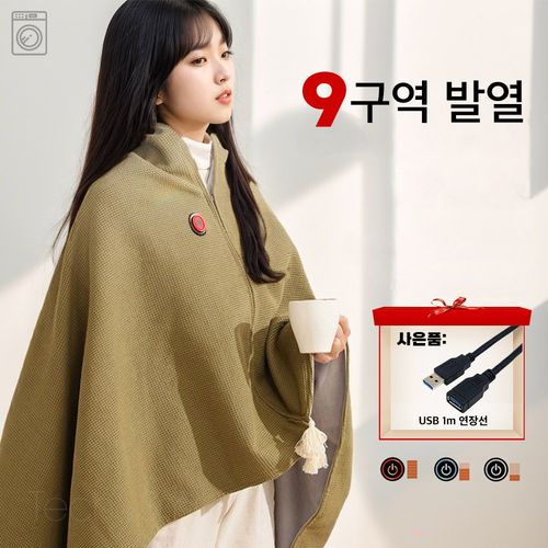 9구역 USB 전기무릎담요 1인용 온열담요 3단조절 탄소 원적외선 망토담요 워셔블 캠핑 차박 사무실,사은품 연장선