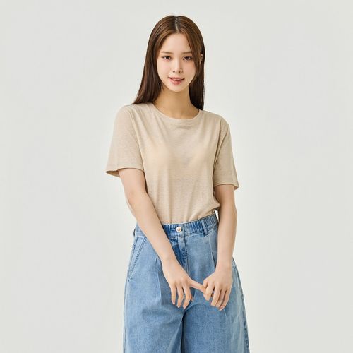 [JAJU/자주] 여 프렌치 리넨 반팔 티셔츠_베이지