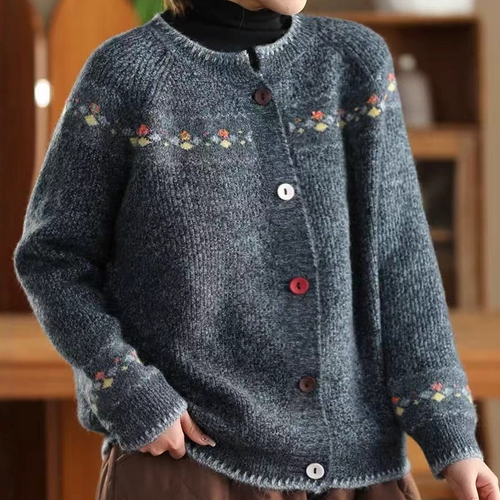 Wa365 여성 플라워 자수 니트 가디건 가을 겨울 간절기 데일리 라운드 가디건 F04