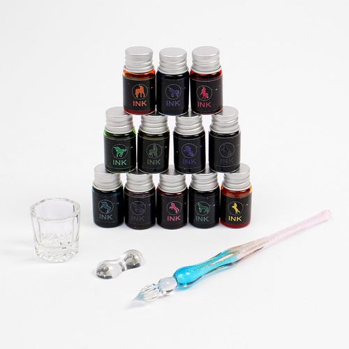 크리스탈 12색 펄잉크병 유리만년필 세트 글라스 딥펜