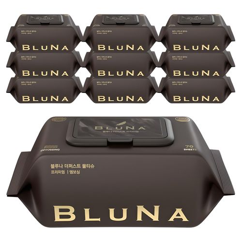블루나 더퍼스트 프리미엄 엠보싱 물티슈 캡형, 10세트, 70매, 75g