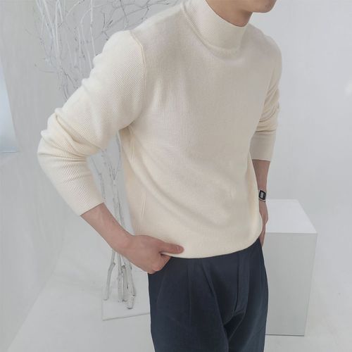 남자 목폴라 니트 캐시미어 터들넥 소프트 골지 반폴라 스웨터 머슬핏