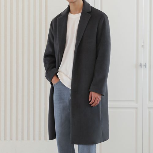 제타22 남성용 고급 울 블렌디드 오버핏 프리미엄 베이직 싱글 코트 [1200]