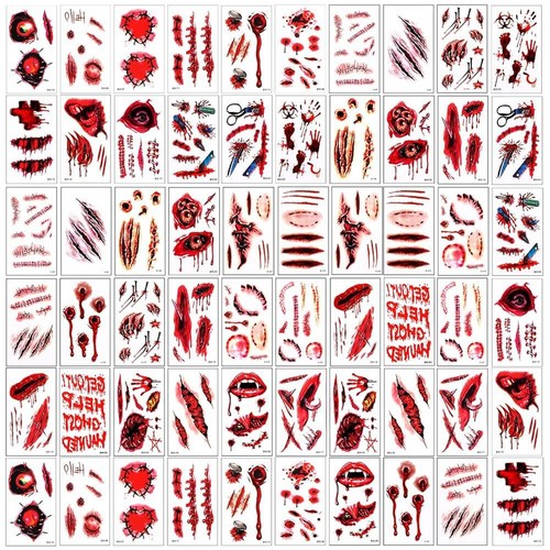 Gjinxi 60 Sheets 3D Fake Scars Tattoo Halloween Zombie Temporary Tattoos Stitches Cut Scary Face
