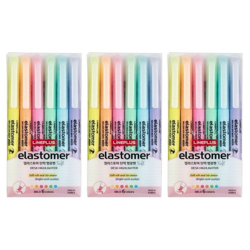 라인플러스 엘라스토머 탄력 형광펜 마일드 6색 3세트
