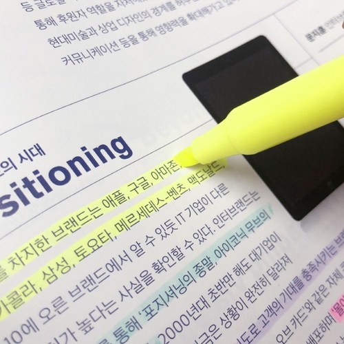 처음에는 색상이 타사 제품과 조금 다르다는 점이 낯설었는데, 쓰다 보니 은근히 눈에 잘 띄고 편하더라고요. 필기하면서도 색이 너무 강하지 않아 마음에 들었어요. 개인적으로는 마일드한 톤이 부담 없어서 좋았습니다.
