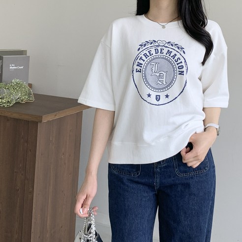 [행복여] 엔터 레터링 로고 루즈핏 반팔 맨투맨 티셔츠