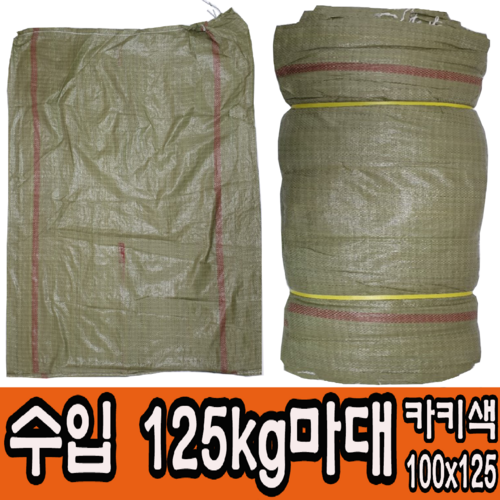 마대자루 수입 125KG(카키) 재활용 폐기물 마대 자루 포대 100*124는 견고한 소재로 만들어져 있어 각종 폐기물 및 재활용에 최적화된 제품입니다. 100개가 들어있는 대량 포장은 경제성을 제공하며, 효율적인 폐기물 관리에 도움을 줍니다. 환경을 고려한 재활용 및 자원 순환을 실천할 수 있는 기회를 제공하며, 튼튼한 구조로 다양한 용도로 활용할 수 있는 유용한 아이템입니다.