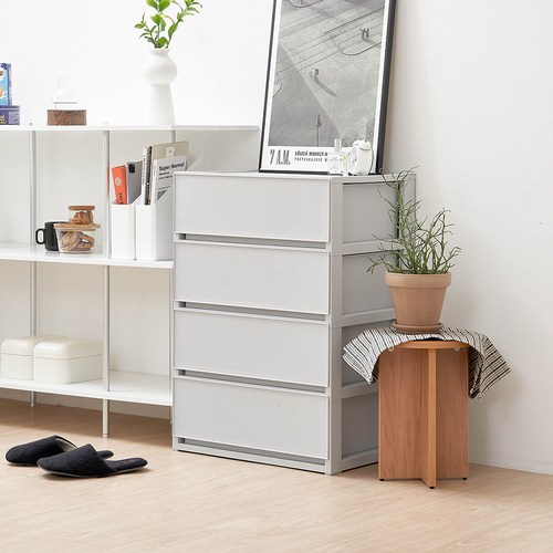 막상 써보니 550mm 폭이 생각보다 넉넉해서 자취방 같은 좁은 공간에도 잘 맞고 수납이 효율적이더라고요. 특히 위 서랍에는 작은 소품들을, 아래는 큰 옷가지 수납하기 딱 좋아서 정리가 한결 편해졌습니다. 조립은 없어서 바로 사용할 수 있는 점도 번거롭지 않고 좋았습니다.