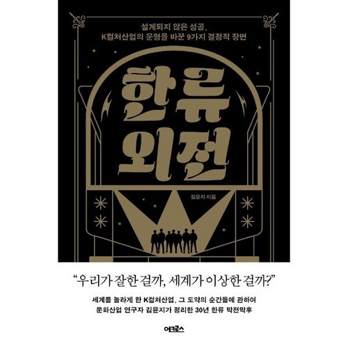 한류 외전 : 설계되지 않은 성공 K컬처산업의 운명을 바꾼 9가지 결정적 장면은 K컬처의 발전과 성공 스토리를 심도 있게 분석한 책으로, 한류의 글로벌 영향력을 이해하는 데 큰 도움을 줍니다. 이 책은 K컬처 산업의 결정적인 순간들을 통해 새로운 관점을 제공하며, 문화 콘텐츠의 기획과 운영에 관심 있는 독자들에게 필독서로 추천됩니다. K컬처의 비밀을 알고 싶다면 지금 바로 확인해보세요.