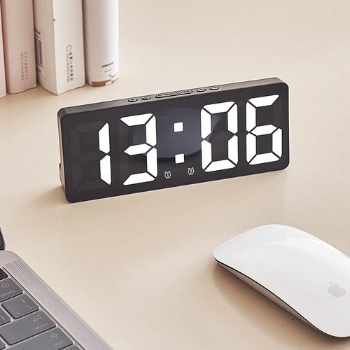 책상 위에 두기 딱 좋은 크기와 디자인입니다. 깔끔하고 세련된 블랙 디자인이 특히 마음에 들었어요. 숫자가 큼직해서 시야에서 금방 확인되고, 낮밤 밝기 조절도 자동이라 편리합니다. 다만, 알람 소리가 좀 커서 조절 기능이 있으면 더 좋겠단 생각이 들었네요.