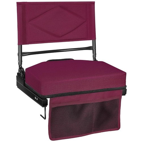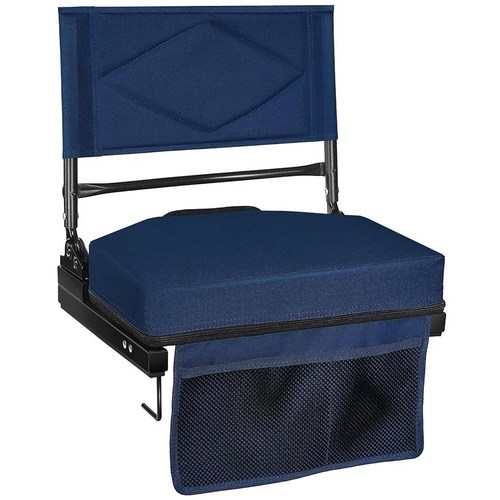 등받이가 있는 조절 가능한 경기장 시트 - 패딩 쿠션이 있는 4단계 리클라이닝 표백 의자 전면 포켓이 있는 접이식 휴대용 경기장 의자 어깨끈 158.8kg(350파운드)