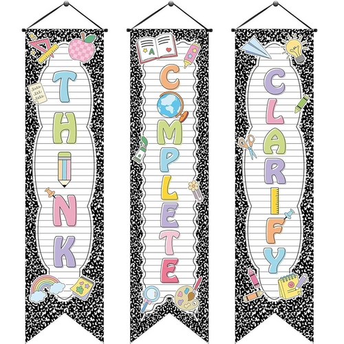 Blulu 3피스 컴포지션 노트 교실 장식 119.9 x 30.5cm(47 x 12인치) 컴포지션 노트 배너 클래식 소녀 스타일 현관 사인 장식 실내 실외 문 벽 학교 교실 파
