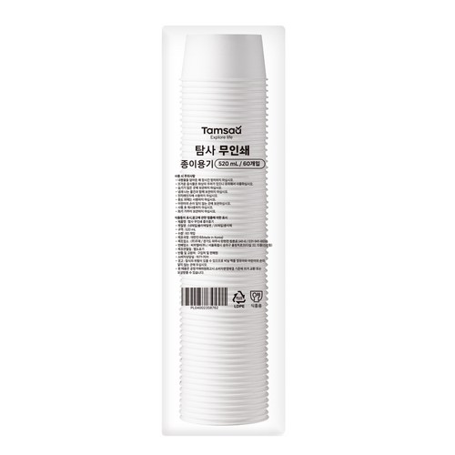 탐사 고평량 무인쇄 종이용기 520ml, 60개입