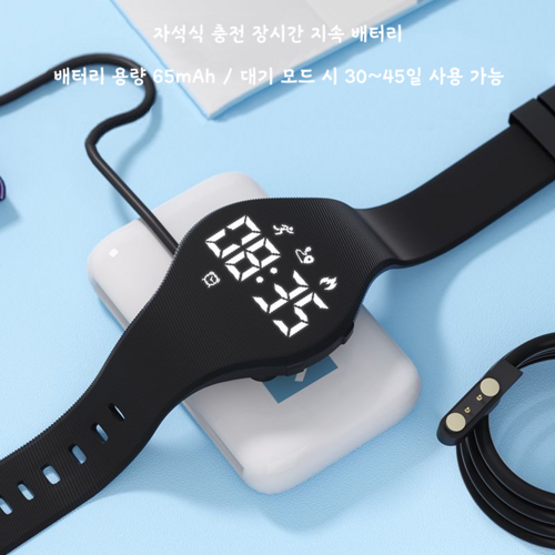 처음에는 단순한 알람 시계인 줄 알았는데, 막상 써보니 진동 알람이 정말 편리하더라고요. 아침에 조용히 깨울 수 있어서 가족이랑 같이 쓸 때 좋았어요. 자석식 충전도 생각보다 간단하고, 50m 방수라 샤워할 때나 운동할 때 편하게 착용할 수 있었어요. 시계 크기도 적당해서 데일리로 딱이에요.
