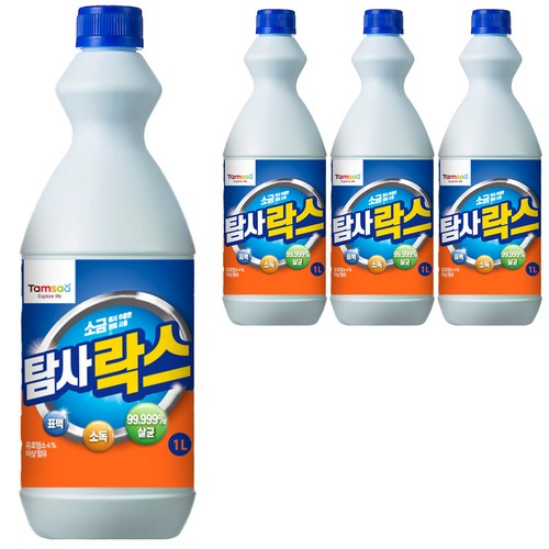 탐사 락스 원통형, 1L, 4개는 강력한 살균력으로 집안의 세균과 바이러스를 효과적으로 제거해줍니다. 다양한 생활 공간에서 활용할 수 있어 청소의 효율성을 높이고, 깨끗한 환경을 유지하는 데 도움을 줍니다. 안전하고 간편한 사용이 가능하며, 1리터 용량이 넉넉해 장기간 사용할 수 있는 경제적인 선택입니다. 효율적인 세척력과 소독력을 갖춘 탐사 락스로 건강한 생활을 유지하세요. 추가로 배송은 빠르게 진행되어 편리하게 받아볼 수 있습니다.