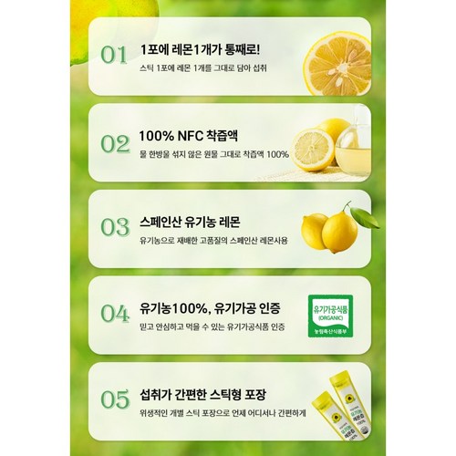 레몬수 유기농레몬 건강즙은 신선한 유기농 레몬으로 만들어진 건강즙으로, 비타민 C와 항산화 성분이 풍부하여 면역력 증진에 도움을 줍니다. 인공첨가물이 전무하며, 자연 그대로의 맛을 살려 건강한 라이프스타일을 추구하는 분들에게 이상적입니다. 매일 아침 한 잔으로 상큼한 시작을 만들어 보세요. 레몬수 유기농레몬 건강즙은 바쁜 현대인에게 필수적인 에너지를 제공하며, 체내 노폐물 제거에도 효과적입니다. 자연의 건강을 느껴보세요.