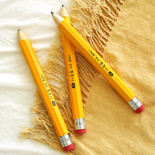 처음엔 연필이 너무 굵어서 아이가 잘 쓸 수 있을지 걱정했는데, 막상 써보니 오히려 잡기 편하다고 좋아하네요. 연필심도 부드럽고 글씨도 생각보다 잘 써져서 만족스럽습니다. 노란색도 밝고 예뻐서 아이가 더 애착을 가지는 것 같아요.