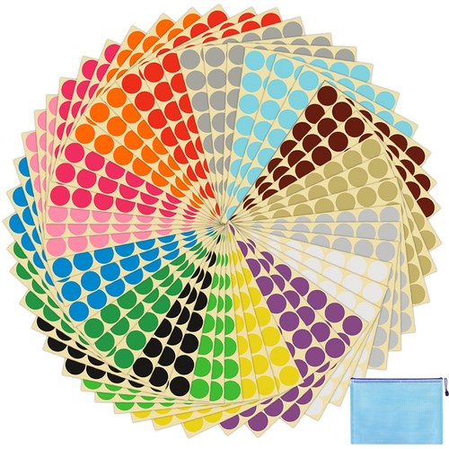 25mm 원형스티커 48매 (1920 개) 16종 색상 원형 도트 스티커 서류봉투 1개 포함